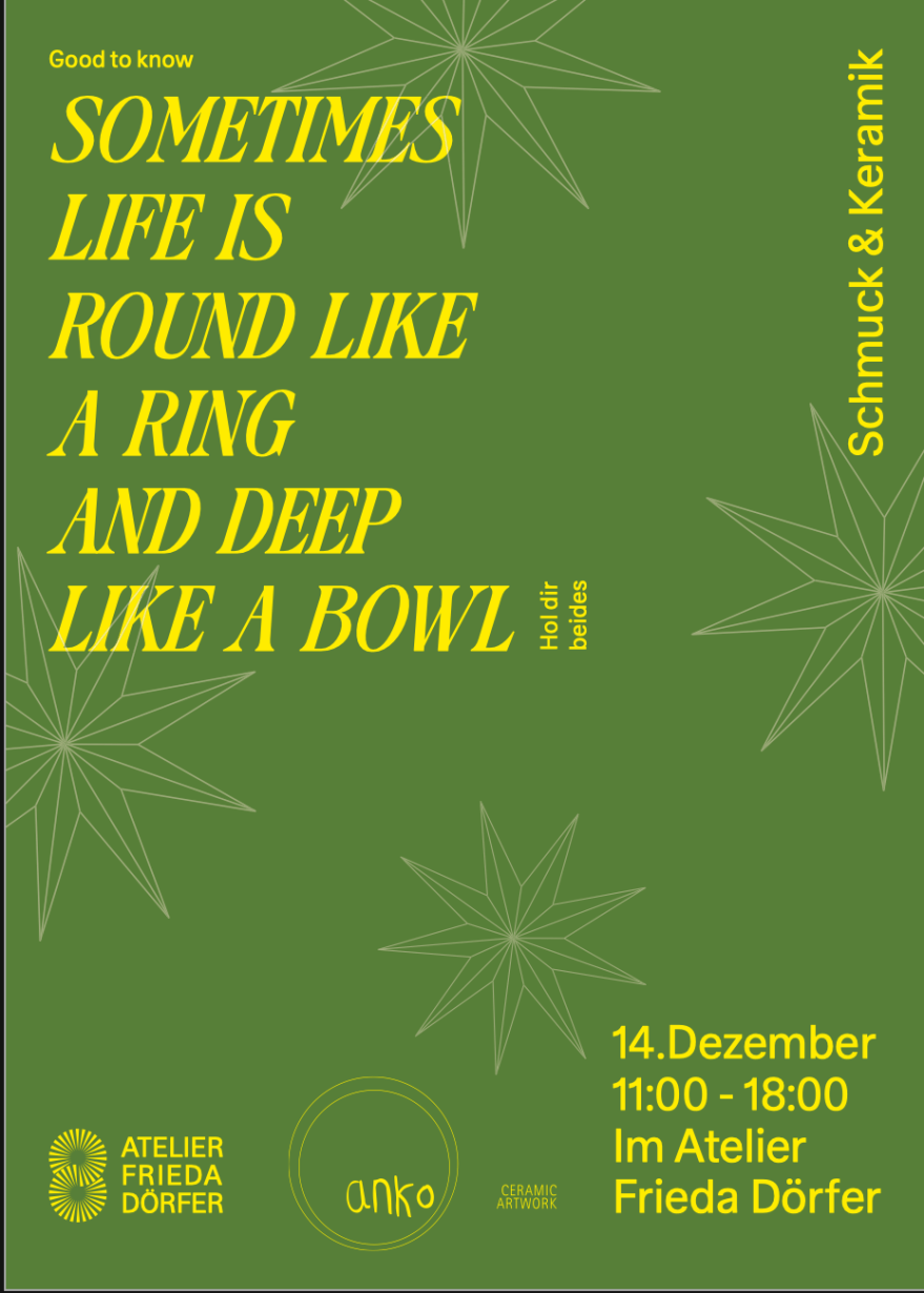 Verkaufsausstellung am 14.12.2024 von 11 bis 18 Uhr im Atelier Frieda Dörfer